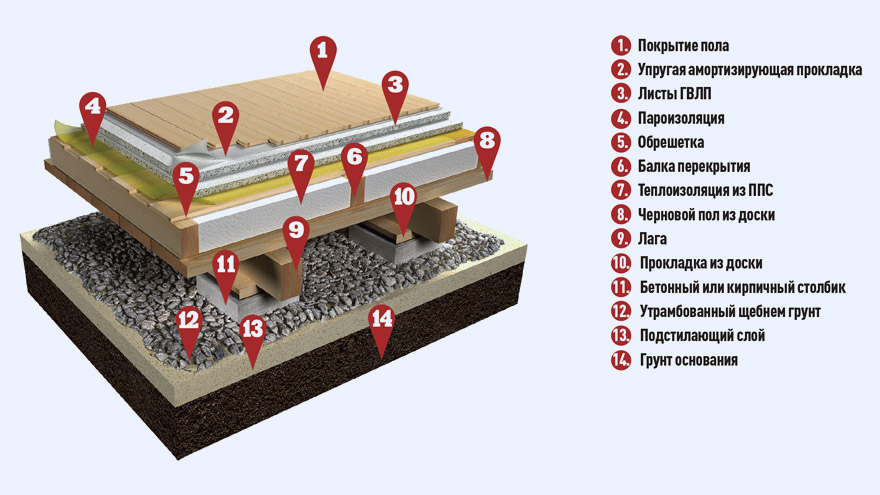 Разработан шаблон спецификации в соответствии с ГОСТ Р 21.1101-2013. Пол на лагах по грунту над холодными подпольями с черновым полом, теплоизоляцией из пенополистирольных плит ППС30-Т, пароизоляцией и обрешеткой из досок и стяжкой из гипсоволокнистых листов. Применяется в малоэтажном строительстве.
