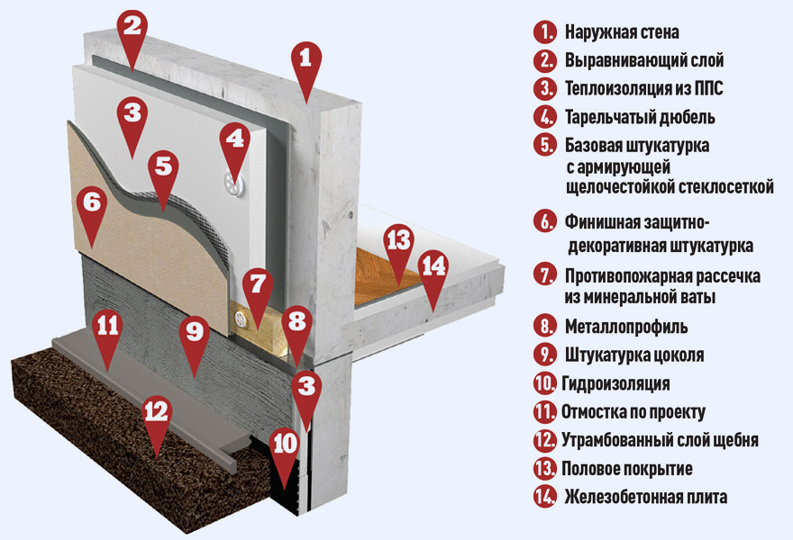 Разработан шаблон спецификации в соответствии с ГОСТ Р 21.1101-2013. Стена подвала с теплоизоляцией из пенополистирольных плит ППС25-Р с несущей конструкцией из кирпича. Плиты теплоизоляции точечно приклеивают к наружной поверхности стены подвала после выполнения по ней гидроизоляции и дополнительно крепят анкерами с тарельчатыми дюбелями. Применяется в многоэтажном строительстве.