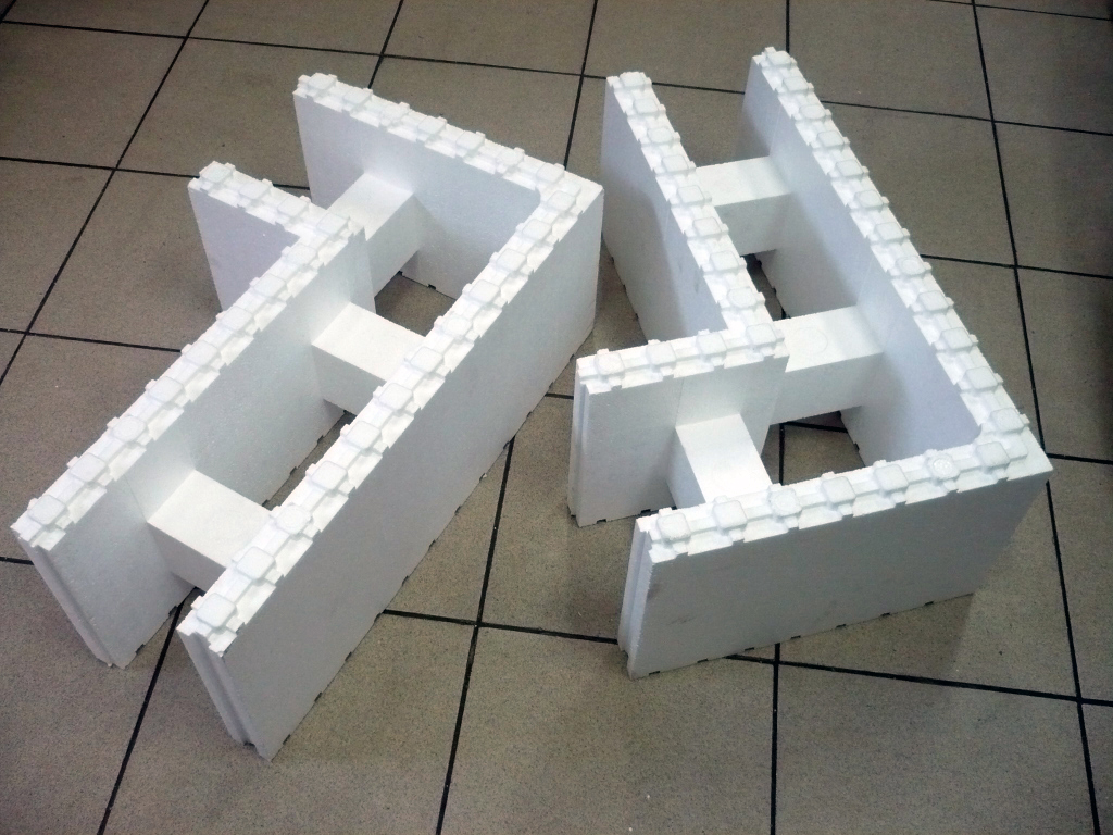 Прямой блок состоит из двух пенополистирольных пластин, соединенных между собой пенополистирольными перемычками.