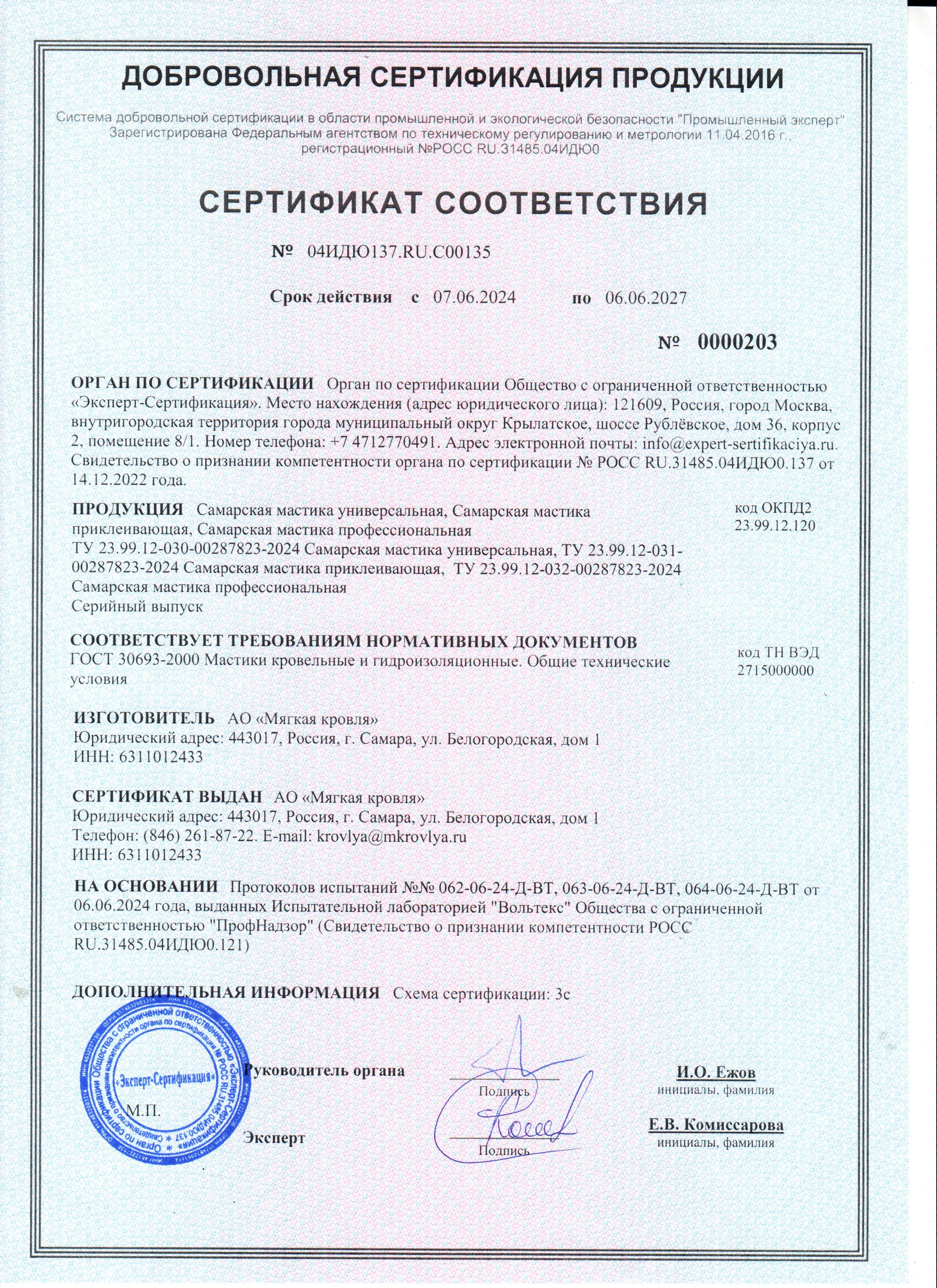 Производится по ТУ 23.99.12-030-00287823–2024 из нефтяного битума, минерального наполнителя и органических растворителей. Соответствует требованиям ГОСТ 30693-2000 «Мастики кровельные и гидроизоляционные. Общие технические условия».