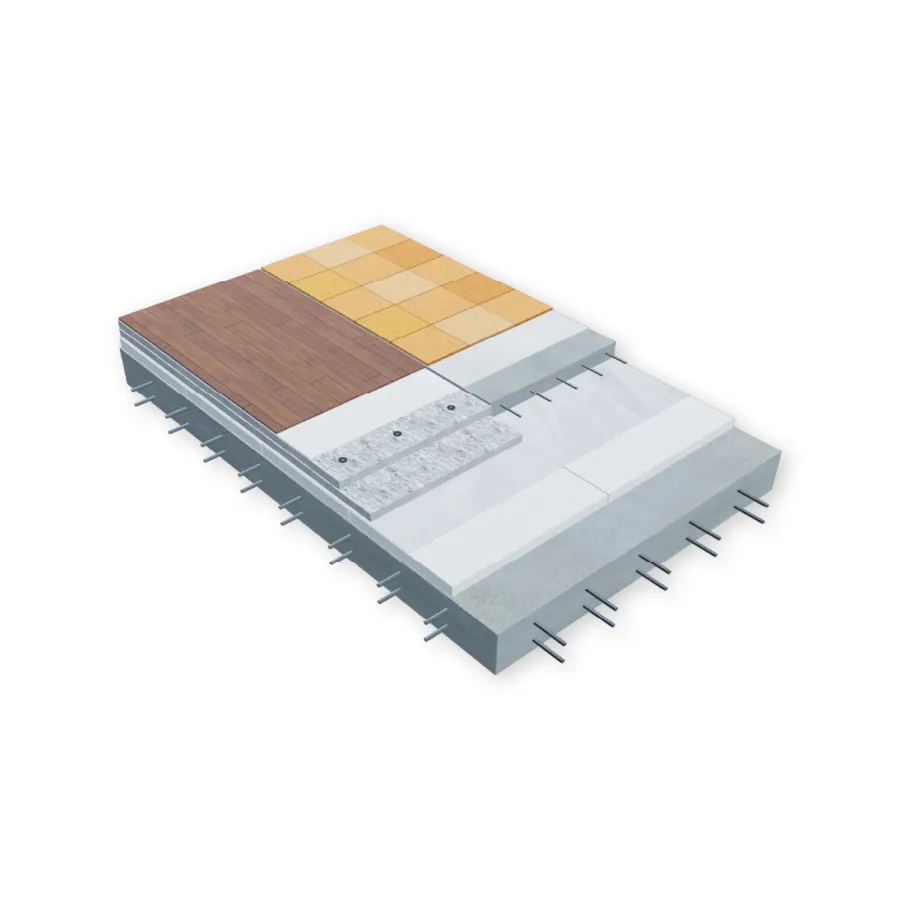 Система используется для устройства звуко- и теплоизоляции полов в жилых, административных и общественных помещениях.