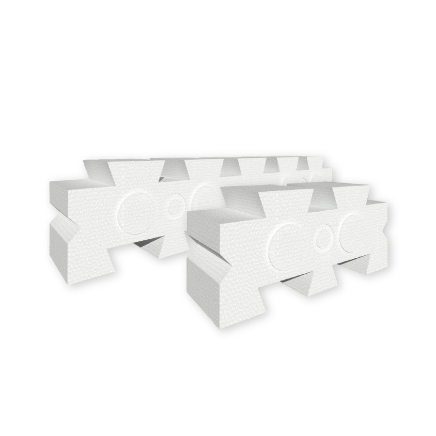 Вкладыши обеспечивают отличную теплоизоляцию наружной кладки (коэффициент теплопередачи тепла U=0,268 м2К/Вт при толщине кладки 300 мм). Полостная часть конструкции аккумулирует тепло, возвращая его в помещение и выравнивает температурные колебания.